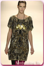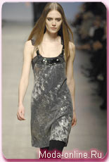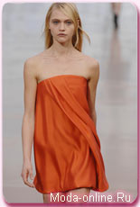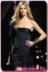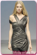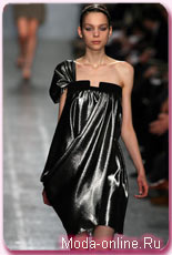 Другой ключевой силуэт - платье с оголенным плечом как с рукавом, так и без, модернизированное, с мягкими, вдохновленными Древней Грецией драпировками и плиссировками, для простого, но эффектного, вечернего образа. Iceberg и Emanuel Ungaro подчеркнули силуэт широкими лентами из того материала, что и само платье. Derek Lam и Alessandro Dell'Acqua привлекли внимание не только оригинальным фасоном своих моделей, но и эффектными, переливающимися тканями. Ключевые цвета: серый, индиго, серебристый или металлик, черный. Основные материалы: шифон и жоржет, джерси, вельвет.