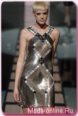 Что может придать вечернему платью больше блеска, чем отделка драгоценными камнями? И даже если это будут не драгоценные камни, а кристаллы, несомненный успех и всеобщее внимание гарантированы. Особой популярностью в новом сезоне пользуются крупные камни, обычно совершенно плоские, создающие большой объемный узор. Актуальна отделка камнями горловины, а также лямок на открытых платьях. А Versace украсил металлической мозаикой все платье. Ключевые цвета и материалы: золото и серебро, прозрачные кристаллы.
